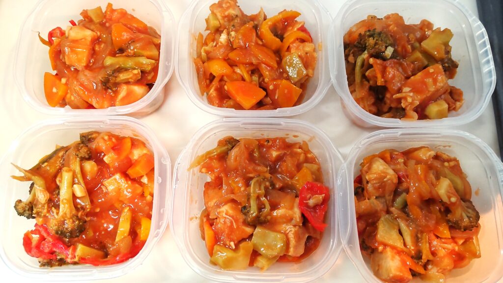 ミールプレップ(冷凍弁当)向けにつくった料理レシピです。市販のパスタソース缶を利用することで簡単においしく作れます。